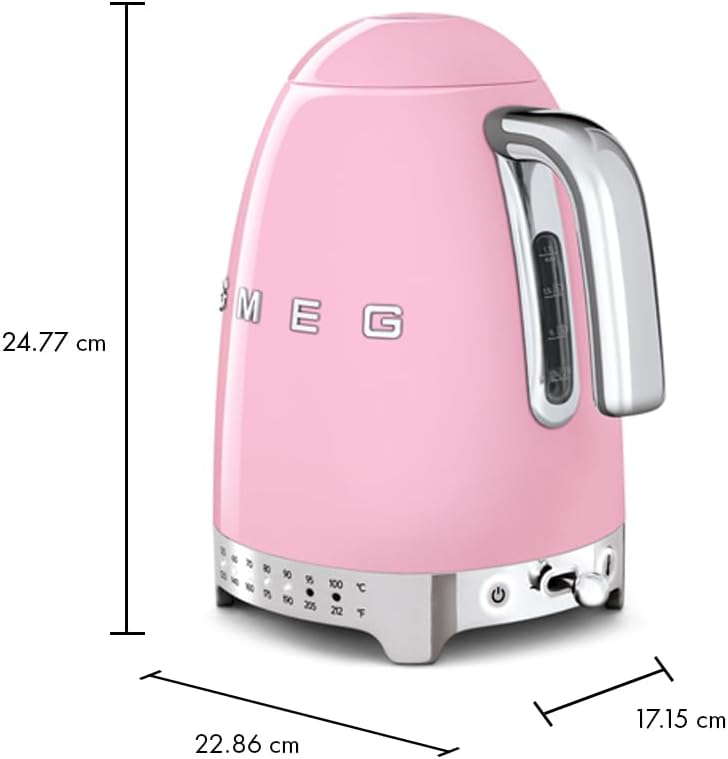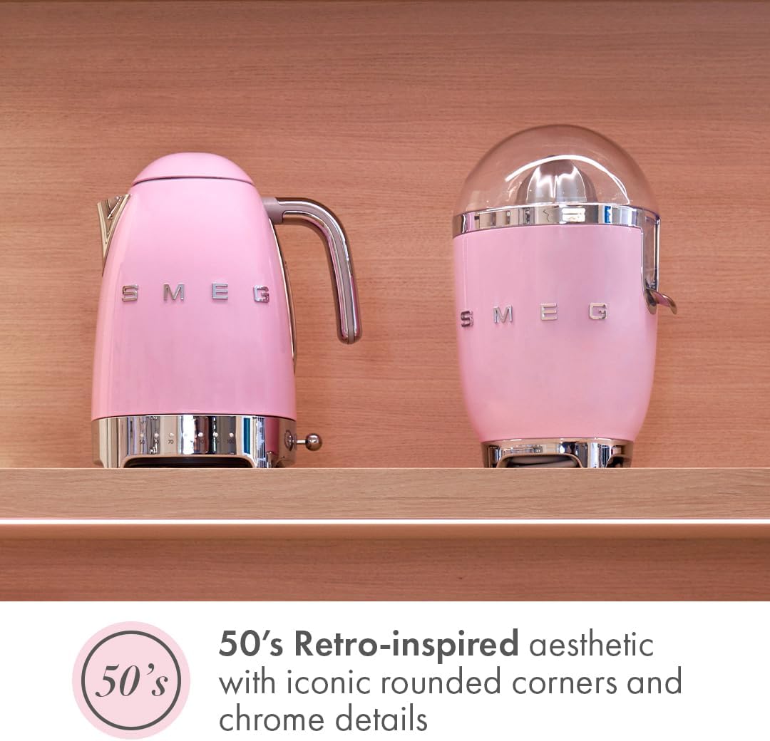 SMEG Retro 7-Cup Electric Kettle – Pink, 1400W, Stylish Design
